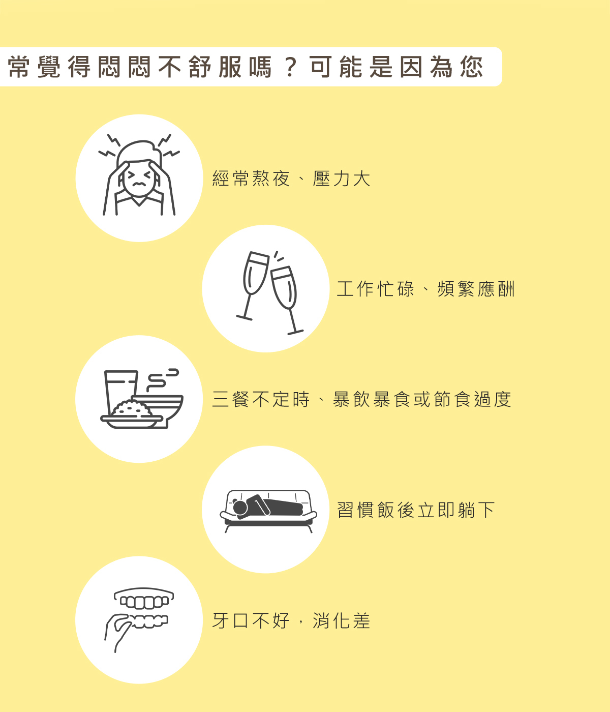 適合族群|飯前後易滿溢不適、三餐不定時、飯後躺下不適者