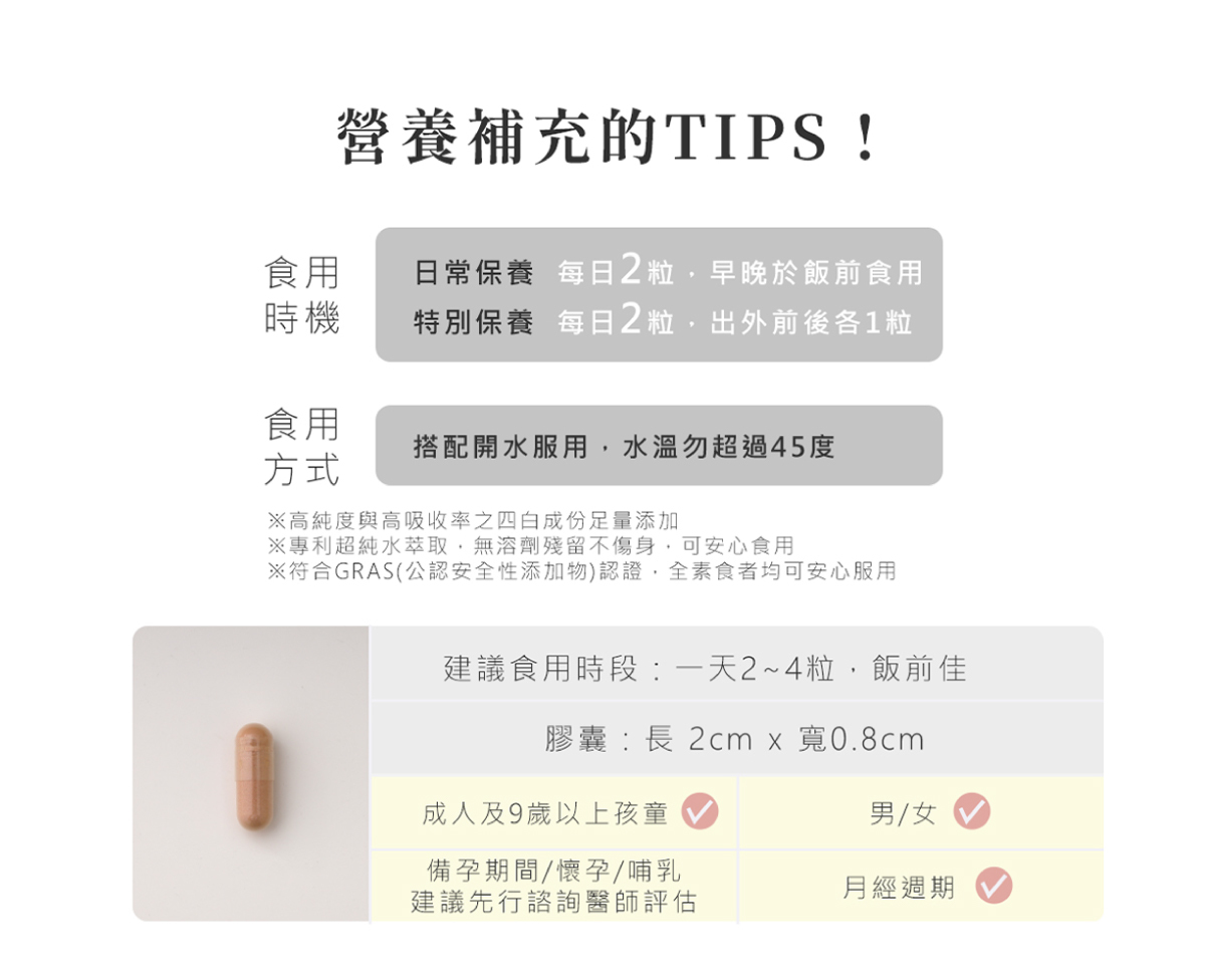▫ 特別保養 : 2粒/日,出外前後各1粒