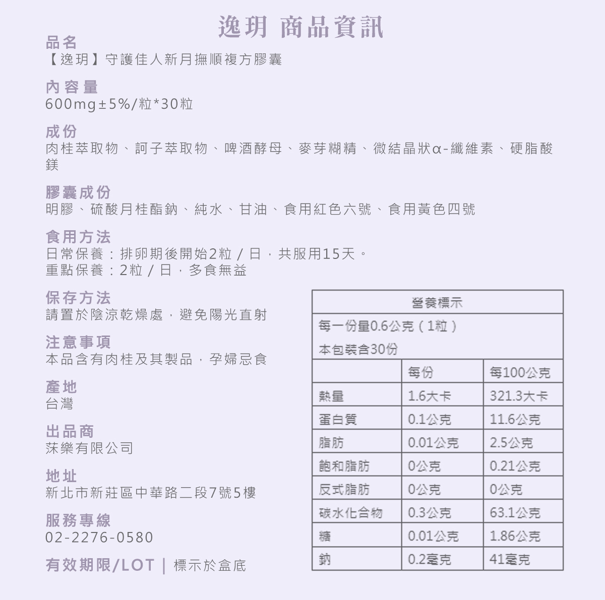 本品含有肉桂及其製品,建議孕婦忌食